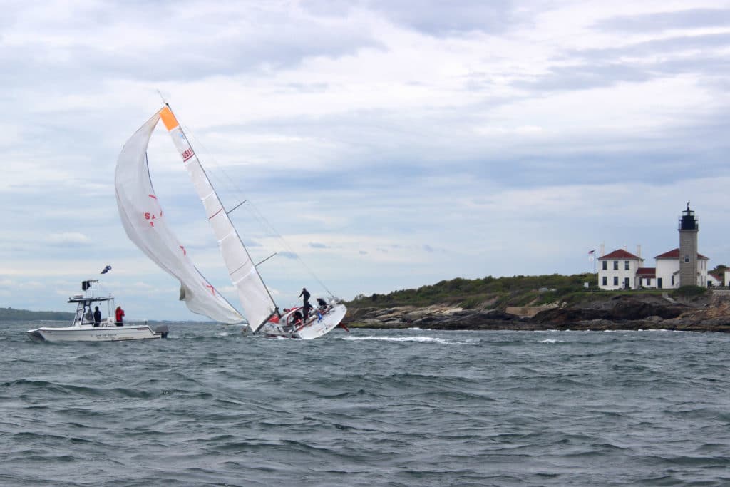 Drama unfolded on Saturday in The Atlantic Cup’s inshore series in Newport, R.I., when Mike Hennessy and Rob Windsor’s Dragon hit a rock while leading the fleet past Beavertail Light. None of the crew were injured, but Dragon retired from racing for the rest of the inshore series with significant damage to the keel and and keel box structure.