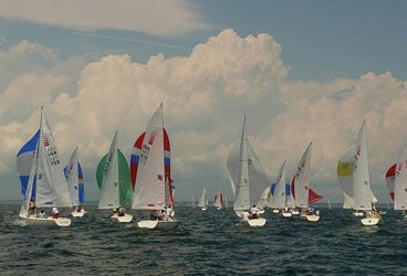 The bigger the fleets, obviously, the more difficult it becomes to sail at maximum efficiency, but there are a number of problem areas to be aware of: the start is at the top of the list. Many sailors tend to pinch off the starting line when they are leeward and ahead of a boat in close proximity. Others tend to foot if they are windward and ahead. If you apply the Goldsmith principle, both are bad moves. Remember, the only way to win is to sail at maximum efficiency more often than your competitors. If you get a good clean start, sail as if no boats are around you.