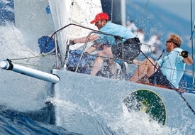 When the call is made to jibe, I stand up, go forward, and as the boat starts to go through the wind, help the kite through the jibe by pulling aft and down. How hard and fast you need to pull is determined by the wind strength; slow and controlled in the light stuff, fast and furious in the breeze. Kite size also makes a difference because larger kites require more strength in the breeze. On a J/120, with its massive spinnaker, we’ve found that in more than 18 knots, the outside jibe is much easier than muscling the entire thing through an inside jibe. With either jibe, the rate at which the trimmer tails can make or break a good jibe. The trimmer should be tailing the sheet for all he’s worth. The second trimmer simply eases the old sheet, and once the clew is past the headstay, lets the sheet run free (making sure he’s not standing on the tail).