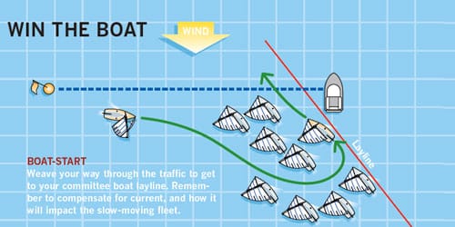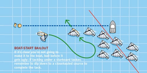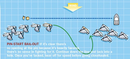 A few months back, we talked about the importance of establishing a set routine for starts—something that will help ensure you’re in a predictable place at a predictable time (January/February 2010). A natural extension of the routine is to use that system to help win either the pin end or the boat end of the start—and determine when to bail if things start to unravel. Let’s take a look at each situation.