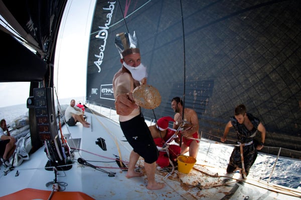 Christmas celebrations onboard Abu Dhabi Ocean Racing during leg 2 of the Volvo Ocean Race 2011-12, from Cape Town, South Africa to Abu Dhabi, UAE. (Credit: Nick Dana/Abu Dhabi Ocean Racing/Volvo Ocean Race)Nick Dana