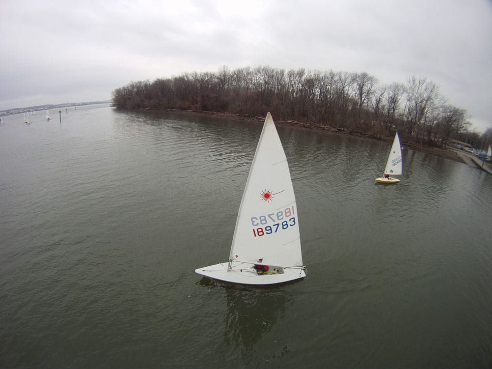 More than 30 Lasers turned out for the Potomac River Sailing Association's annual New Years event. SW contributor Tim Zimmermann took first place, winning four of five races. Read about the racing in our Finish Line forum. Mast-eye view photos by Mark Hergan.