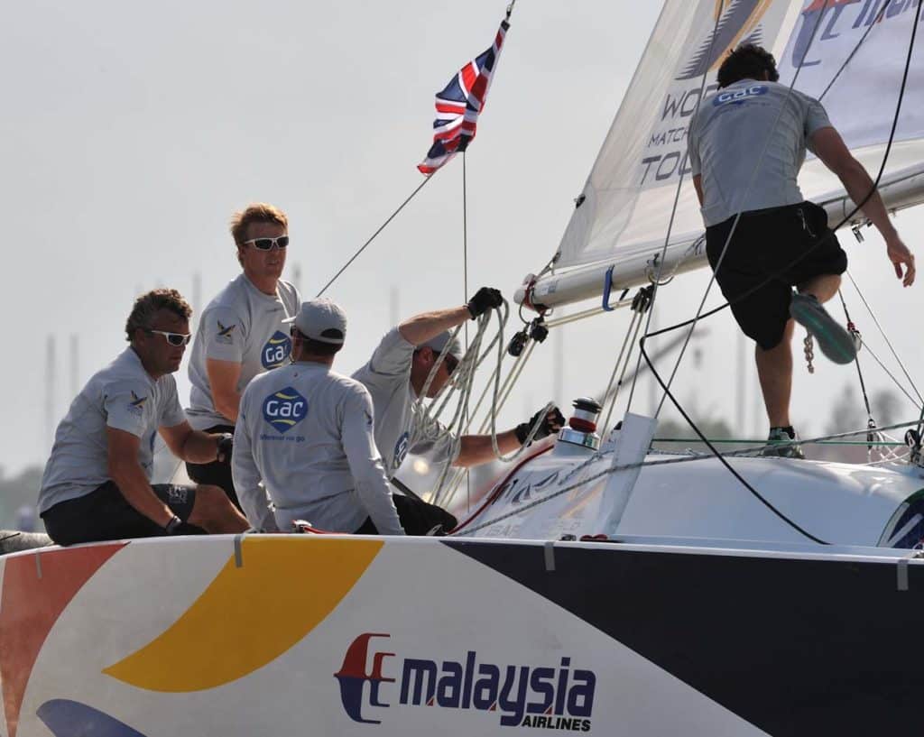Ian Williams collects the World Match Racing Tour world title, Bruni in second place and Berntsson in third. Photo: Chris Davies/WMRT