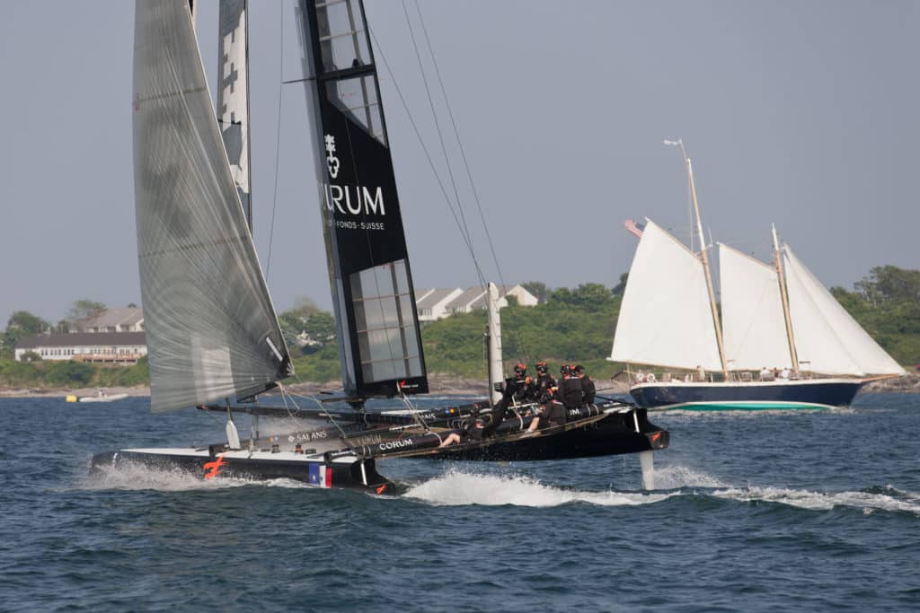 Note that you’ll have to stay outside of the lines delineated by “Stake Boats” flying large red America’s Cup flags from their rigs. No anchoring is allowed, and a spectator “Safety Zone” will be enforced starting one hour before the racing.