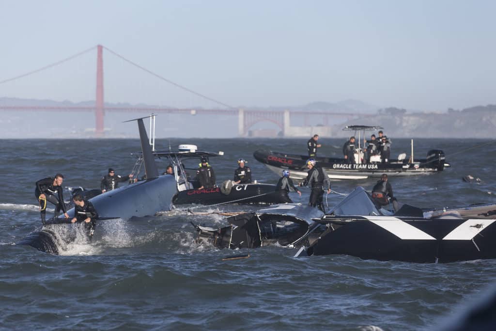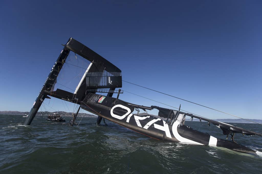 Photos by Guilain GRENIER / ORACLE TEAM USA. Click here to watch the capsize and the aftermath.