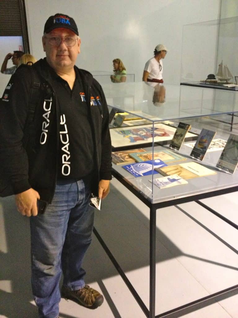 Ed Worley, a past America’s Cup campaign grunt from 1987 (Eagle Challenge) is a collector of AC memorabilia and a rabid fan of the regatta. Here he scopes out some brochures from regattas past. Dave Reed