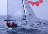 A 75-kg one-design version of the box-rule Cherub class, the Cherub Daemon was among the lightest boats at the trials. (Cherub sailors boast that they can pick up their boats and carry them directly into the water.)