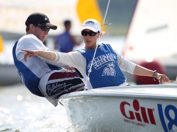 Sailing for Yale is: Graham Landy ’15 with Katherine Gaumond ’15 in A-division and Ian Barrows ’17 with Meredith Megarry ’17 in B-division.