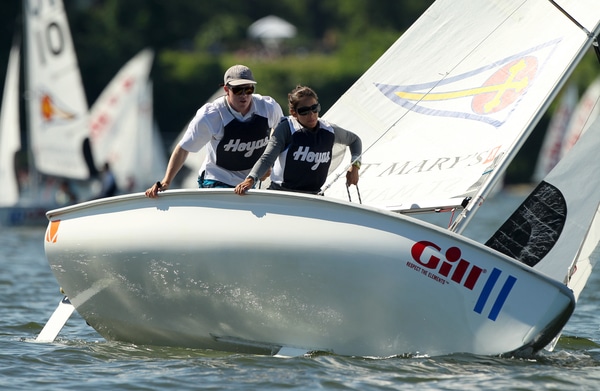 St. Mary’s City, Md. (June 5, 2014) – The Gill Coed Dinghy National Championship continued today at St. Mary’s College of Maryland on the St. Mary’s River. The top eighteen collegiate teams in the nation advanced from the previous two days of competing in semi-finals to make it to the finals event today.