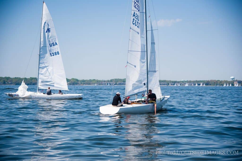 Even in the light air, the 20-boat J/22 class was able to complete two races. Chris Doyle’s The Jug 41 won the highly competitive class.Paul Todd/Outside Images