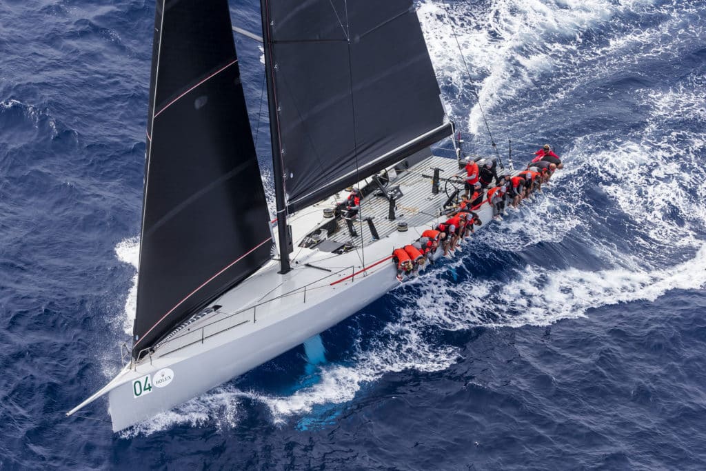 In the Rolex Maxi 72 World Championship, the big winner was German Dieter Schön’s MOMO, which claimed both today’s races. Moving her into the lead, she is just 1.5 points ahead of Hap Fauth’s Bella Mente, in turn a quarter point ahead of Roberto Tomasini Grinover’s Robertissima III.