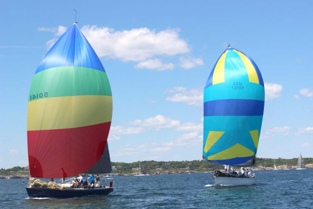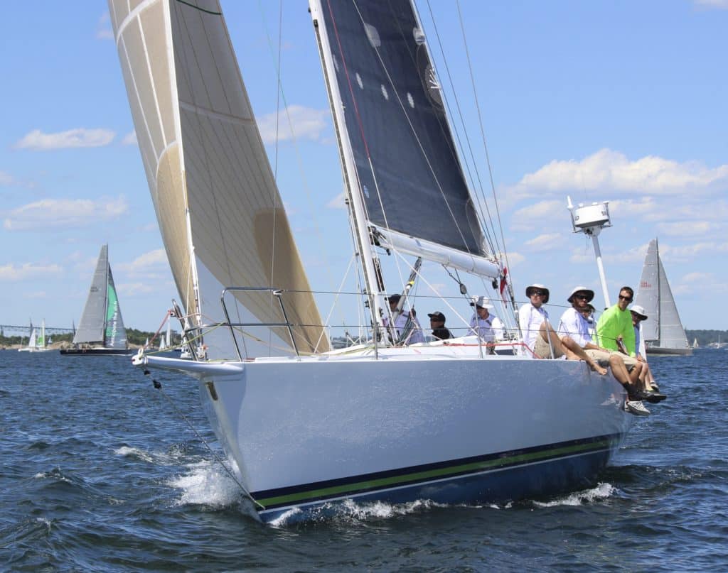 J-125 Crossfire ducks another Gibb’s Hill Division boat as they race down Narragansett Bay. Even with 635 miles to go, these racers fight for every foot at the start.