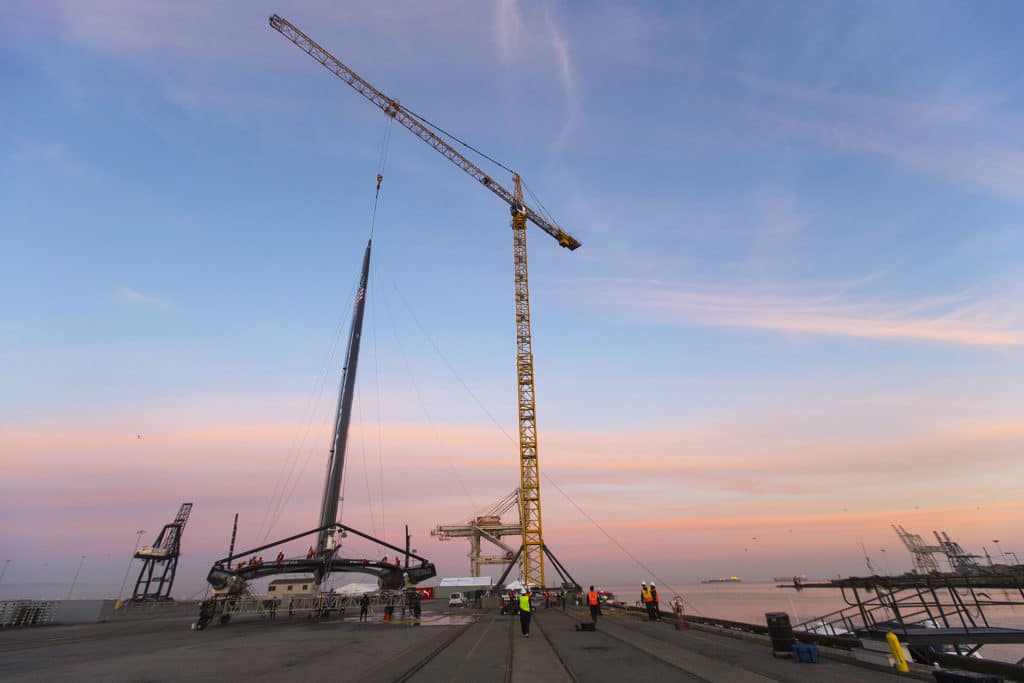 The team has been hard at work to get back on the water since their AC72 capsize on Oct. 16.Guilain GRENIER