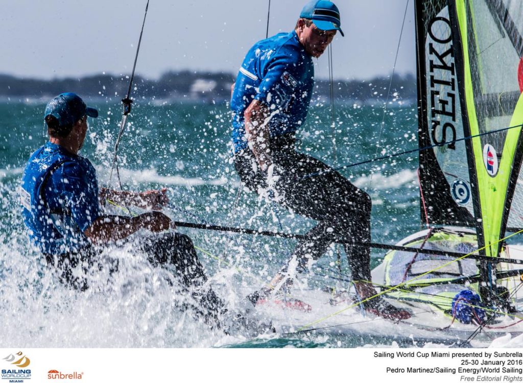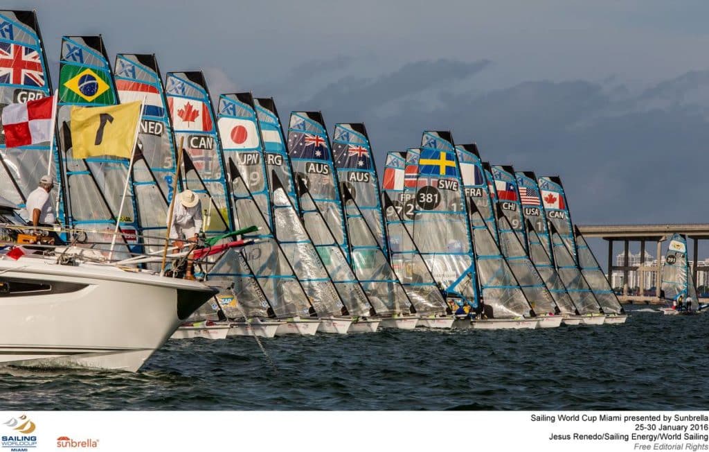 Biscayne Bay provided the 711 sailors from 64 nations with a welcome breeze for Wednesday’s racing at Sailing World Cup Miami presented by Sunbrella.