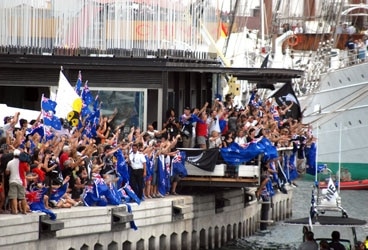 VALENCIA, Spain-Countless times during the course of the Louis Vuitton Cup, Emirates Team New Zealand tactician Terry Hutchinson mentioned how the team loves a good fight, how the Kiwi crew is more comfortably leading a race by 2 boatlengths than 20. It often seemed more mantra than reality.However after the third race of the America’s Cup, no one will question that statement again. Team New Zealand, after nailing the first shift and building a 350-meter lead midway down the first beat. The race looked like a laugher-something Alinghi has never really experienced. But after then some defensive sailing by Team New Zealand on the run, a couple of rare crew mistakes, Alinghi charged back into the race and eventually into the lead. On the second beat, the Swiss team made up an astounding 1:17, going from 1:02 behind to 15 seconds ahead. It was only with the pressure back on, and trailing by 100 meters, that Hutchinson and his team found their stride again.The final run was one for the ages. Two thirds of the way down it, the two teams crossed paths with Alinghi choosing to continue on starboard, allowing Team New Zealand to take the right side of the course. It was the decision that decided the race. With the separation maxing out at 1200 meters, Team New Zealand picked up a favorable shift on the right side of the course-a left shift as opposed to a right shift often expected in Valencia-and gradually ate into the lead, eventually taking control of the advantage line. Alinghi’s Rodney Ardern explains why the team, with the lead, allowed Team New Zealand to get so much separation.It was tense from there to the finish; the wind so light that it was all the trimmers could do to keep the spinnaker full. But Team New Zealand was able to hold the lead through the finish, nailing its final jibe and crossing the finish line 25 seconds ahead to take a 2-1 lead in the 32nd America’s Cup. It was a clutch performance by a team that seemed completely unglued two legs earlier as it botched a spinnaker douse and struggled to get back up to speed. Mastman Matt Mason explains how the douse went so pear-shaped so quickly. It was without a doubt one of the best races in recent America’s Cup history, though you wouldn’t have known it from the comments from Alinghi, who to a man felt the race should not have been run in the very shifty conditions. Listen to runner/pitman Dean Phipps put his spin on it.This race seemed like it was little more than a formality 10 minutes after the start. In fact, the crucial decision seemed to have been made before the start as Team New Zealand fought hard for the right, giving up nearly eight seconds off the line-and nearly two boatlengths of distance once the boats settled onto their respective tacks, starboard for Alinghi and port for Team New Zealand. Phipps says Alinghi got the start it wanted, but not the result. This decision paid off quickly as Team New Zealand nailed the first shift, a huge righthander. From there the breeze seemed to favored the right all the way up the bat and Emirates Team New Zealand built a lead that would stretch to more than 200 meters. ETNZ’s wind spotter Adam Beashel explains how the team got the start right in this audio clip.The delta around the first mark was 1:23, the advantage line more than 350 meters. Alinghi jibed first, with Team New Zealand following a minute or so later. In those conditions covering from ahead is very difficult. The apparent wind on the boats goes so far forward that the boat ahead is usually forced to wait a significant amount of time before jibing to follow the boat behind. Because of this, the minimum separation on a run like that can be 300 meters. ETNZ weather strategist Ray Davies explains why covering downwind in lilght air is so difficult for the lead boat.The lead on the run varied between 200 meters and 350 meters depending on which team had the pressure. Toward the bottom of the run, Team New Zealand jibed into a position where it could cover Alinghi’s move toward the right side of the course and still leave itself with one jibe for the left-side gate mark. However a right shift pushed Team New Zealand down toward, but not quite to, the layline, and drastically favored the right-side gate mark. The result was the team’s worst takedown of this America’s Cup cycle. Midbowman Richard Meacham fell overboard, saving himself by grasping the bob stay, and the spinnaker came down very slowly. Worse yet, the spinnaker fouled in the genoa trimming system and the team struggled to get up to speed.While Team New Zealand had rounded with a wind direction of 135 degrees, a huge right shift, Alinghi came in a minute later and rounded with the wind 20 degrees or so to the left. The Swiss team lifted off the Kiwi’s line and then tacked to play the left side. By the time the boats came together halfway up the beat, they were bow even. Team New Zealand was able to plant a leebow on SUI-100, though it took a minute or so to stick. Team New Zealand followed suit a minute or so later and initially appeared to be benefiting from a right shift. When the shift went the other way Alinghi tacked and forced TNZ back toward the starboard-tack layline. When the two boats came together on the port-tack layline; Alinghi was able to cross clean ahead and round with a 15-second lead.Tomorrow’s race looks quite crucial for Alinghi and the conditions look like they could be quite similar. But Ardern doesn’t expect anything to change in the team’s approach.