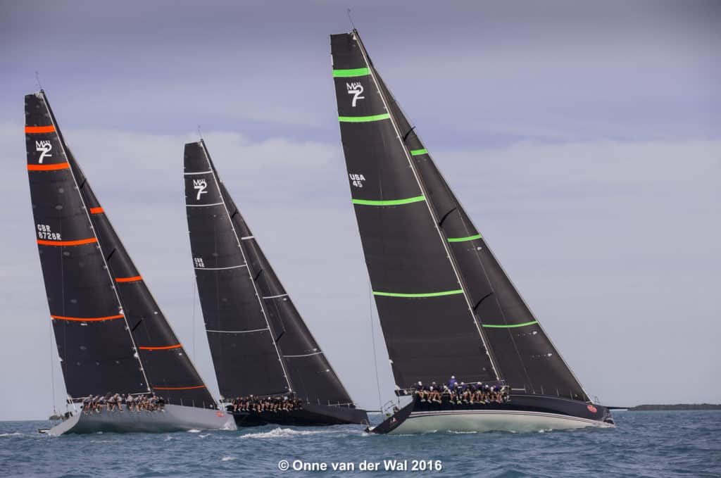 No class is closer than IRC 1 where the TP52 entries Spookie and Quantum Racing are separated by just a half point. Skipper Doug DeVos (Ada, MI) steered Quantum to victory in all three races today and now has the low score of 16.5 points. Skipper Steve Benjamin (Norwalk, CT) and his crew on Spookie placed second in all three starts today and has 17 points.