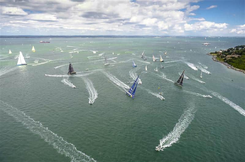 Spectacular Solent: the Rolex Fastnet Race fleet fills the water between the Isle of Wight and the mainland