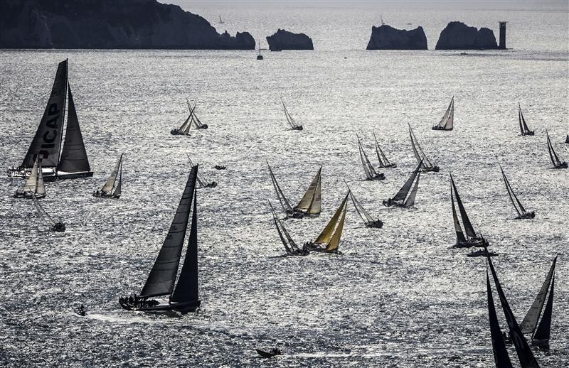 The Rolex Fastnet Race 2013 record breaking fleet passing by The Needles