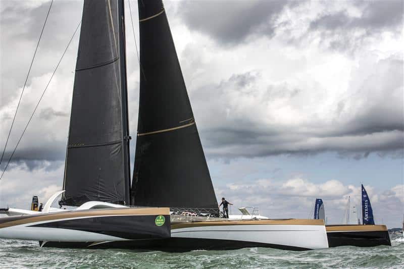 The Multihull class formed the first start of the 2013 Rolex Fastnet Race, including BANQUE POPULAIRE and EDMOND DE ROTHSCHILD – GITANA XV