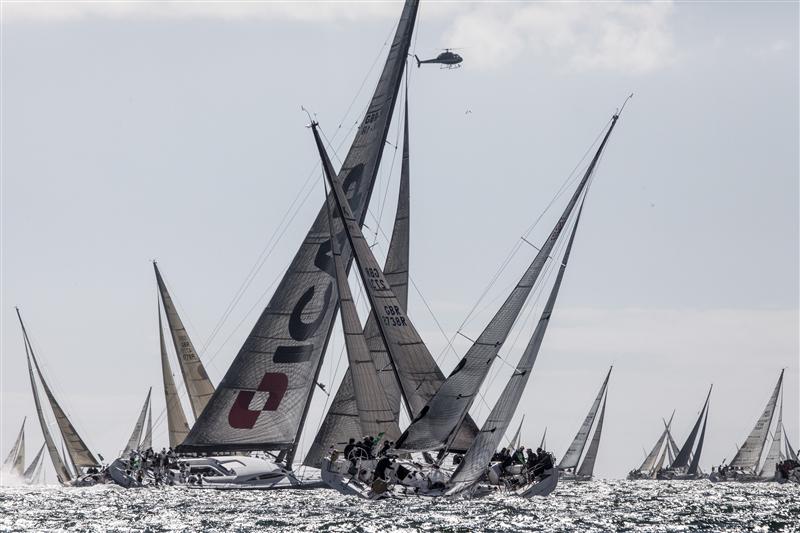 The largest and fastest monohulls pass Egypt Point following their start off Cowes