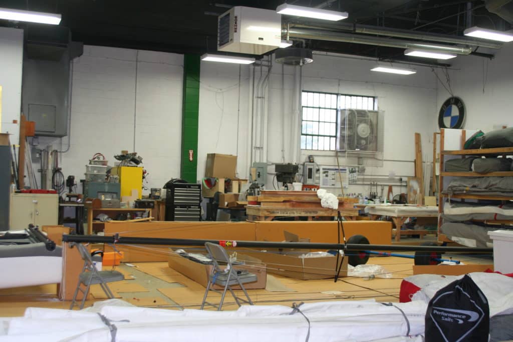 Oakcliff’s workspace was filled to the brim with freshly delivered Nacra 17s.