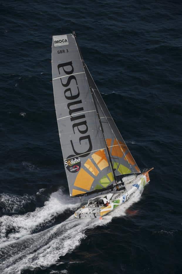 However, Dick did not think that British contender Mike Golding (helming Gamesa, at left-photo by Lloyd Images) was a favorite to win. Dick told me that Golding “lacks the experience” to win the race. Golding, understandably, was surprised by Dick’s statement; Golding has taken part in three Vendée Globes and completed two, placing third in 2005.