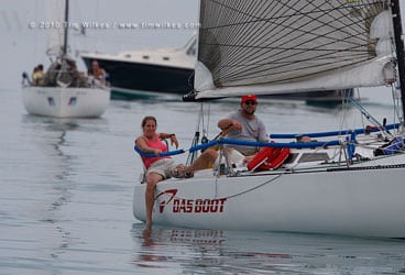 The Tartan Ten class—as any T-10 sailor will tell you in the first seconds of any conversation, nautical or otherwise—is home to some of the most die-hard one-design racers in the sport. Year after year, you see the same teams coming together, bound less by matching crew gear than by shared memories of summers past. Because the class is strongest in the Great Lakes, T-10s always make a big showing at the Detroit and Chicago NOODs. With 17 of the 33-footers competing here on Lake St. Clair and 31 expected on Lake Michigan next weekend, 2010 is no different.