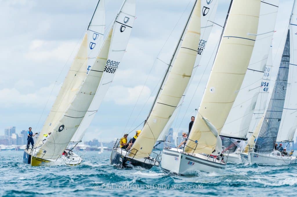 Chicago, Illinois (USA) The fourth event of the 2015 The Helly Hansen NOOD REGATTA SERIES hosted by Chicago Yacht Club, held on Lake Michigan. Race day three out on the white circle race course with a light but steady westerly breeze. ©Paul Todd/OUTSIDEIMAGES.COM OUTSIDE IMAGES PHOTO AGENCY