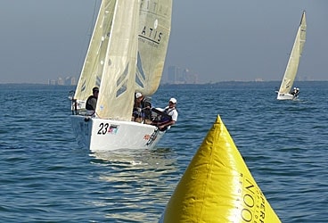 It took Hoodlum and the rest of the top portion of the fleet 10 minutes to cover the last quarter mile to the finish, and they crossed the line with the jib up and going upwind-though the wind filled back in from the east for the bulk of the fleet. But for Hulsey, Hoey and the rest of the Detroit-based crew, the finish was worth the wait. They duplicated their performance from 2006, when they also won the first race. That year, they finished the regatta sixth. This year, they’ll be aiming a little higher.