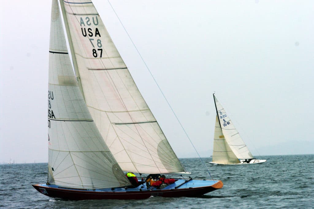 Perhaps not the most beautiful day on the water, but still got races in. Photos by Jan Anderson /