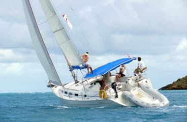 The current was swift and swirling-the wind even more so-as Dan Kaseler and his crew short-tacked their 39-foot Sunsail charter boat through Great Thatch Cut, a narrow and notoriously fickle passage at the western end of Tortola, British Virgin Islands. They were protecting a comfortable lead, aggressively hugging the eastern shore of Little Thatch Island for current relief and tacking on the capricious windshifts fanning out from Soper’s Hole. Their nearest rivals had split, choosing instead to sail around the other side Little Thatch and beeline for St. Johns in search of better wind. It was impossible for Kaseler to cover.