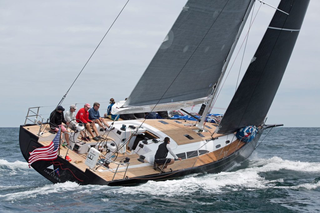 At 1600 hours on Wednesday June17th Hinckley’s Bermuda 50 sailed away from the company’s Southwest Harbor, Maine boatyard bound for her homeport in Rhode Island. The excitement and the champagne that would surround the launch of the first new Hinckley sailboat in over ten years would have to wait as the Bermuda 50 was all about the business of making it to the start of Block Island Race Week. The boat, Watermark out of Jamestown, RI, will have fulfilled her dual purpose as cruiser and competitor before the first week under her new burgee is over.