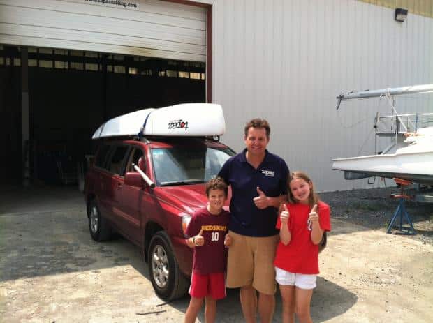 When we returned to our home waters of the Chesapeake, I wondered if it might be possible to find a Topaz. I had never seen one in the US, but a quick Google search revealed that not only is there now a Topaz dealer in the US, it is just up the road in Annapolis. Sometimes, you have to love globalism. I called. Peter Cook, the friendly rep charged with taking the United States sailing world by storm, was eager to sell me a boat and just happened to have a lightly-used Topaz. That’s when I knew that the sailing gods had held me back from buying a sailboat all those years because I was fated for a Topaz. We struck a deal and I car-topped the Topaz home with two excited kids.