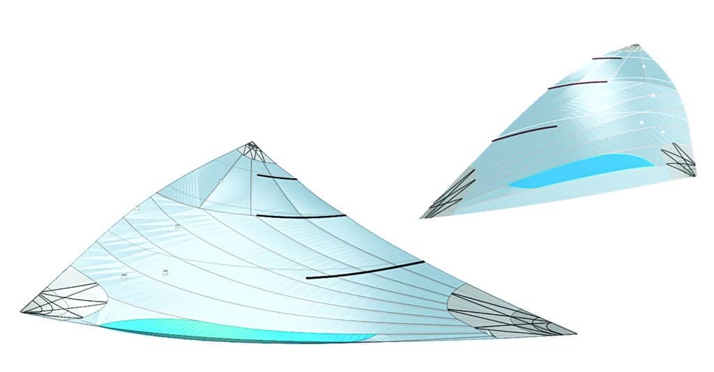 That’s one of the reasons everyone agrees the new sail will last significantly longer. A sail lasts for donkey’s years as an object, but as a performance product, Lennon says, some top Olympic sailors would say the previous sail was fast for just one regatta. He believes that Olympic contenders will get double the life out of the new sail, and club-level sailors will get an entire season and not notice a difference in performance. Johnson agrees with that assessment. He saw a Mark II sail on the water that had “75 days of practice and still looked good.”