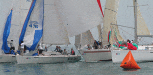 The Tartan 42 Great Whisper began Day 1 of the 2003 Sailing World Detroit NOOD regatta in fine fashion, blaring “Eye of the Tiger,” by