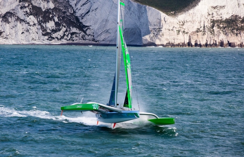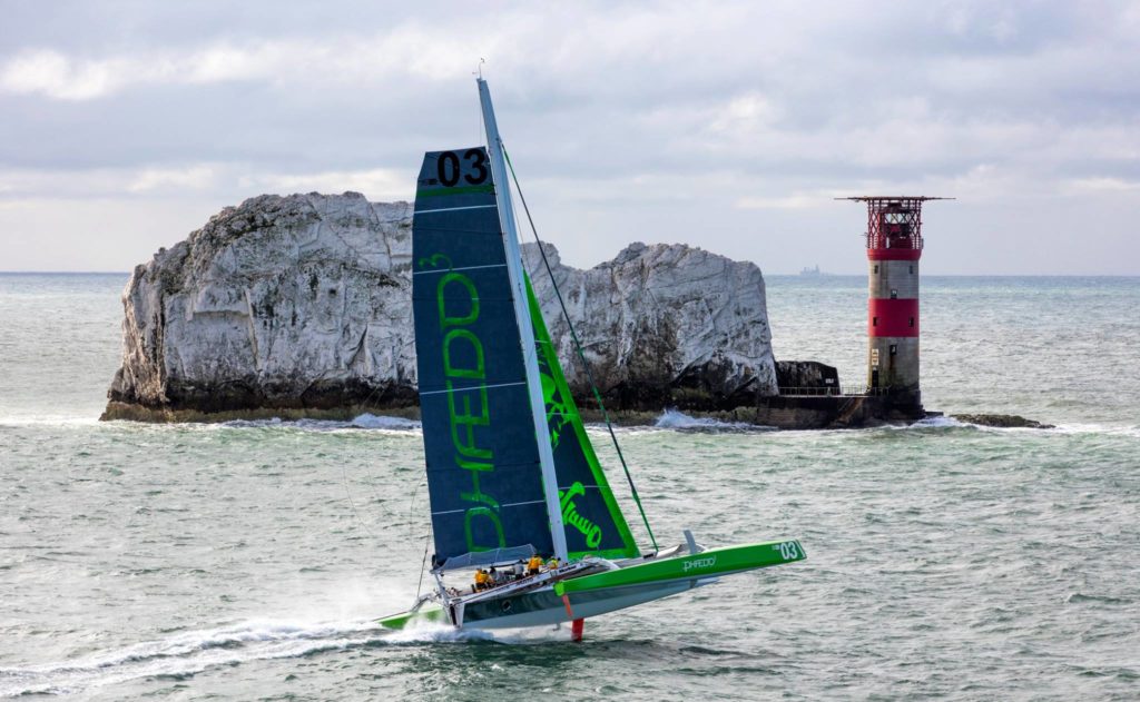 Phaedo 3 doesn’t show any signs of slowing down. Fresh off a course record for the original Fastnet, the green machine has taken the Cowes-Dinard record.